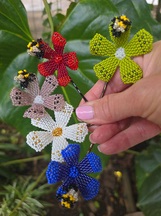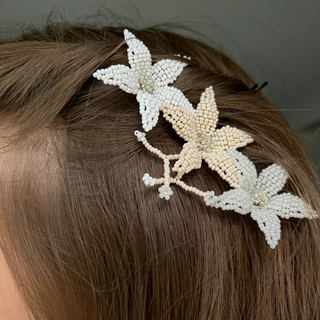 "Such beautiful hair clips. I bought the white floral one, they look gorgeous in a bun or even stacked to create a pretty hair look. Beautifully crafted :)"– Sam Thompson